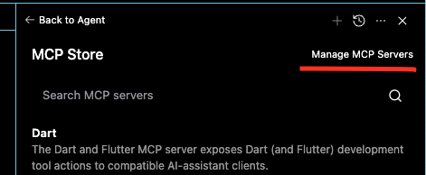 2. 서버 관리: "Manage MCP Servers"를 클릭합니다.